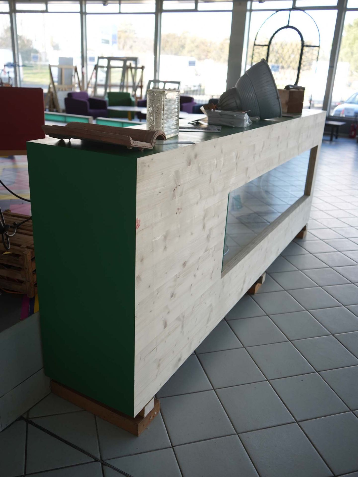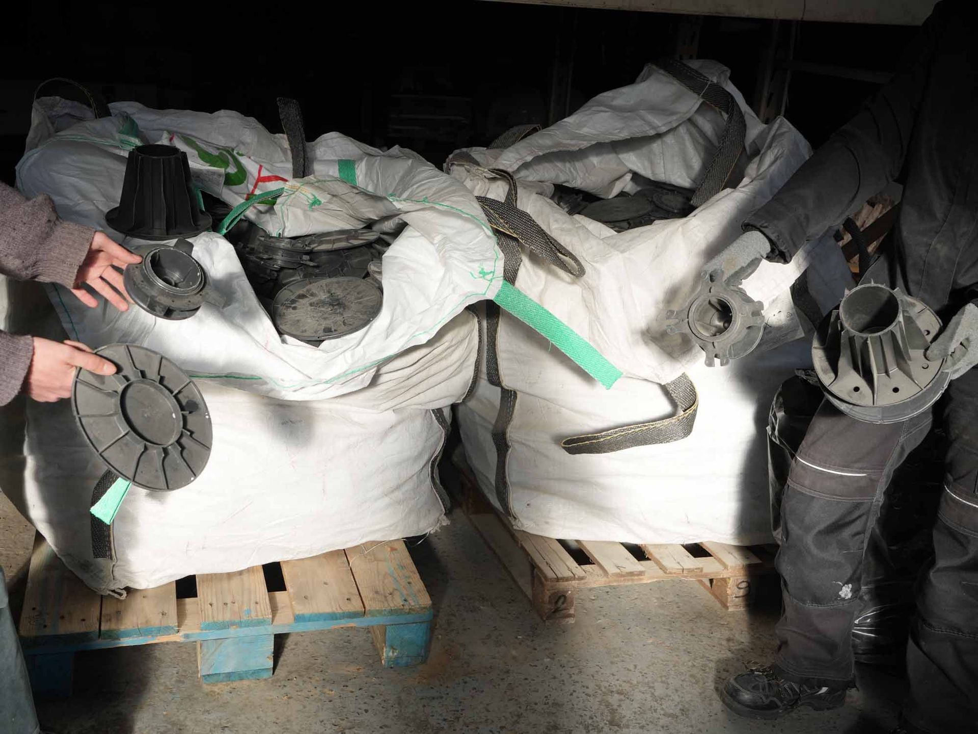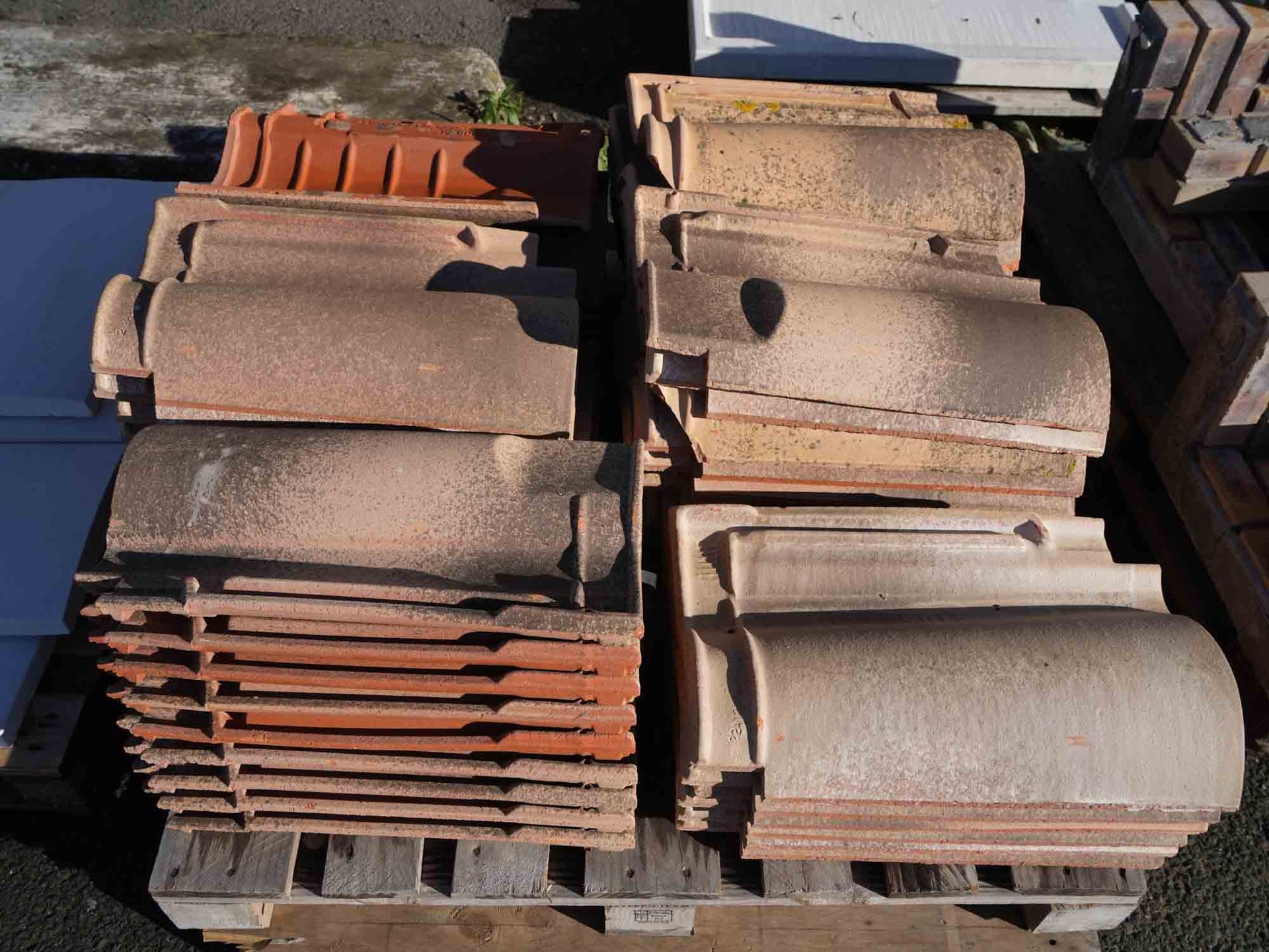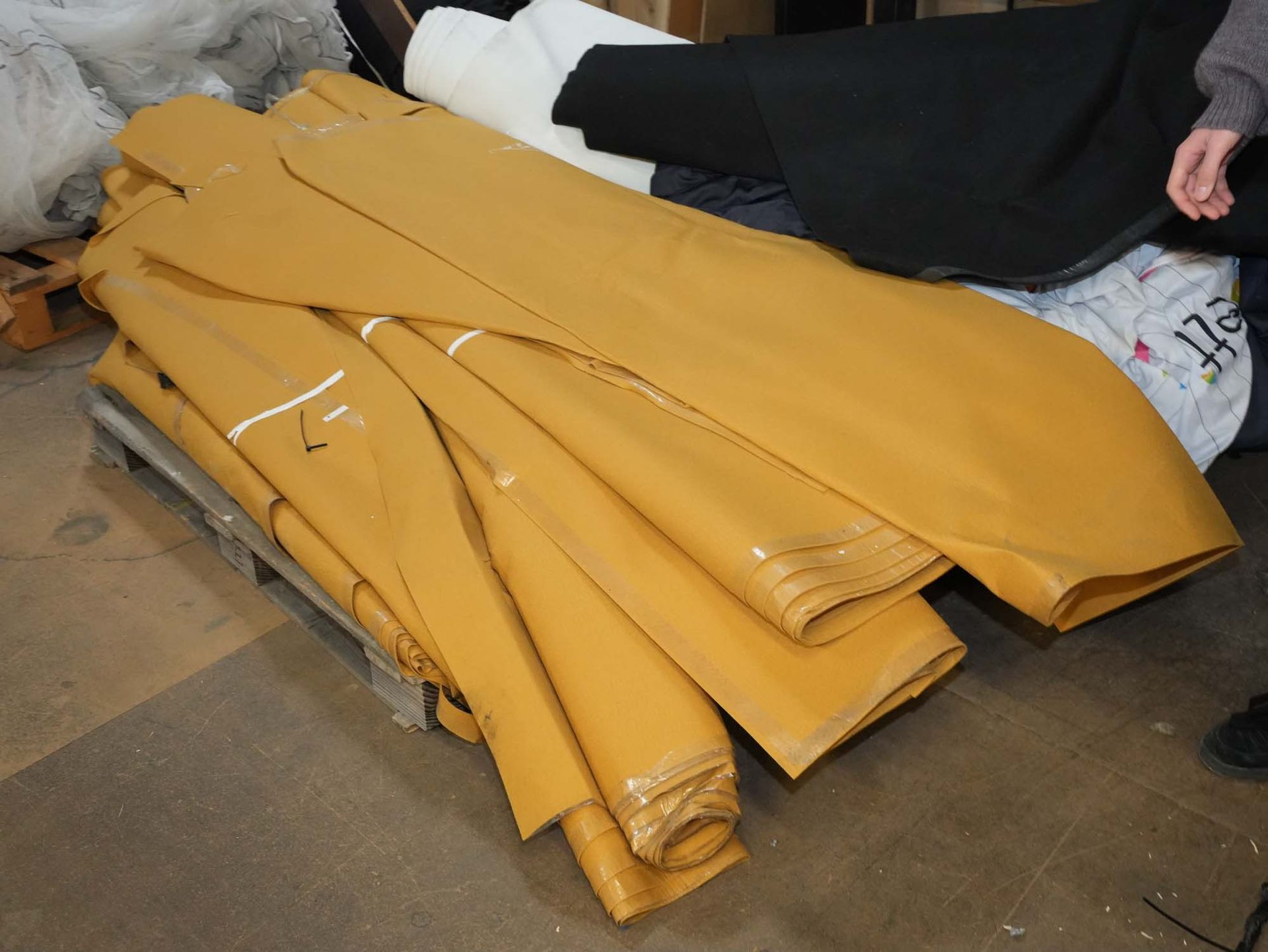 nombreuses menuiseries PVC, très grand lot de plots de terrasse (plusieurs dimensions), palettes de tuiles, plaques de mélaminé, isolants PU, plateaux avec vasques d’angle, grand lot de rouleaux de moquette (nombreuses couleurs), modules de cuisine, banque d’accueil, etc.